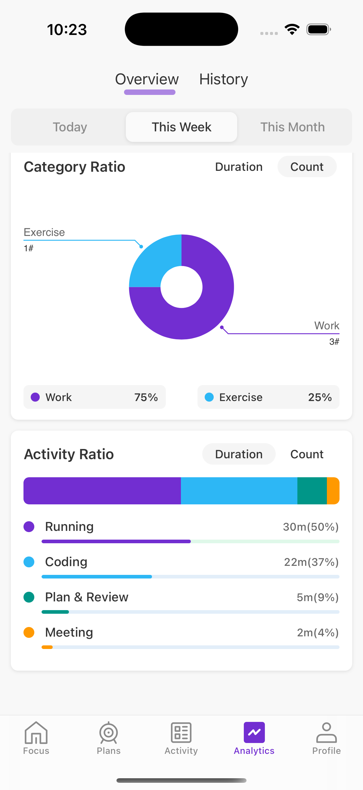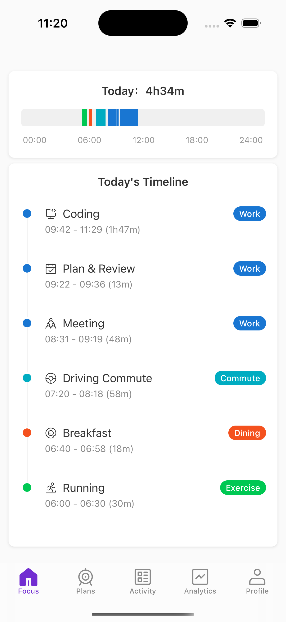 Set daily and weekly goals (e.g., code for 4 hours, read for 30 minutes) and view real-time progress bars at a glance. In-depth, multi-dimensional charts help you find time sinks—just like profiling performance bottlenecks—to continuously optimize your workflow.